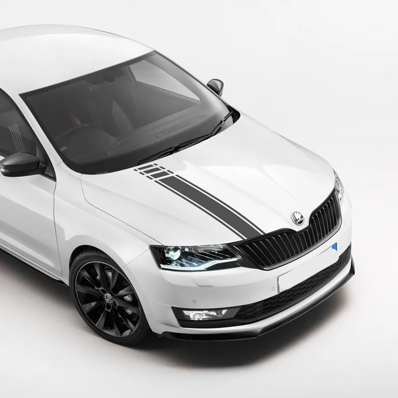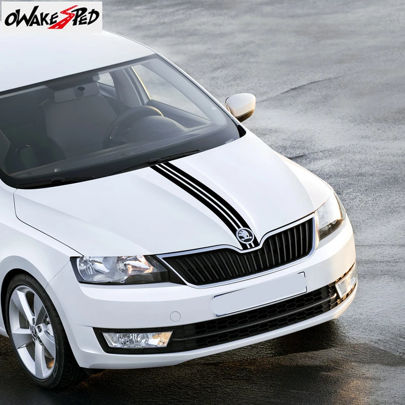 Наклейка на капот автомобиля спортивные полосы для укладки волос крышка капота двигателя Декор Наклейки на авто головного средства ухода за кожей Шеи виниловые наклейки для Skoda Rapid 2013-2019