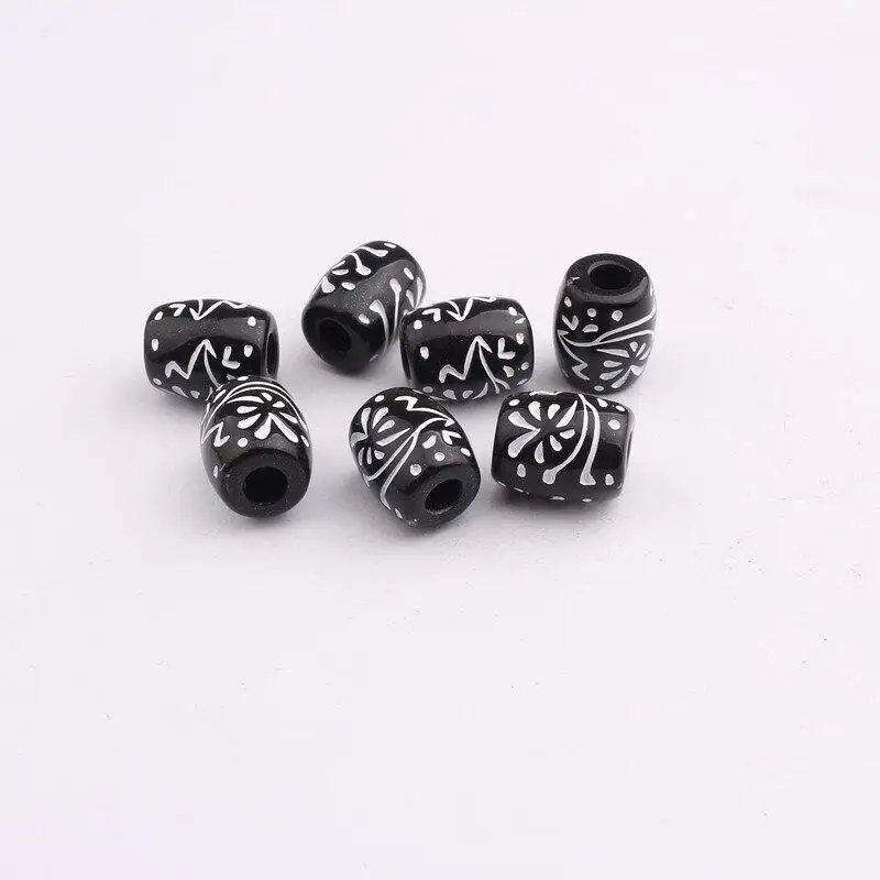 Кольцо для волос в стиле бисера с черным принтом, пластиковые большие бусины с отверстиями, африканские тканые декоративные бусины, бусины для волос, бижутерия для косичек