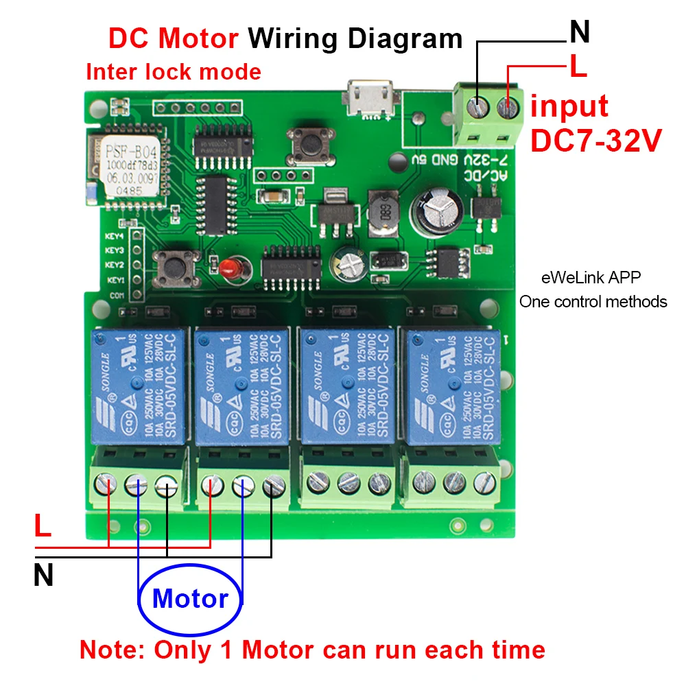 EWeLink умный переключатель 4 Wifi реле канала гаражные двери завальцовки лампа мотор Шторы переключатель DC12V 24V 32V 220v с автофиксациейшаговым управлением с автоматической блокировкой