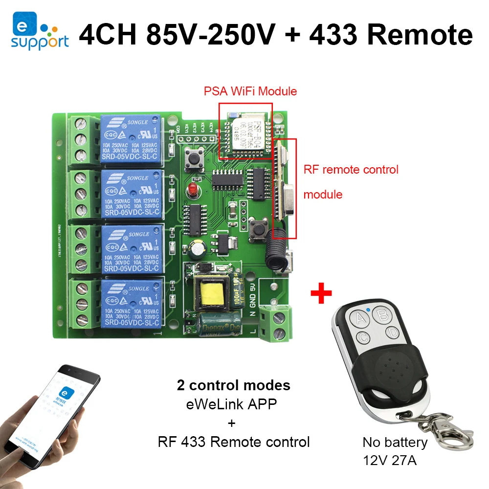 4 канальный DC7V-32V (поддержка 433 МГц) Wif + RF беспроводной модуль переключения
