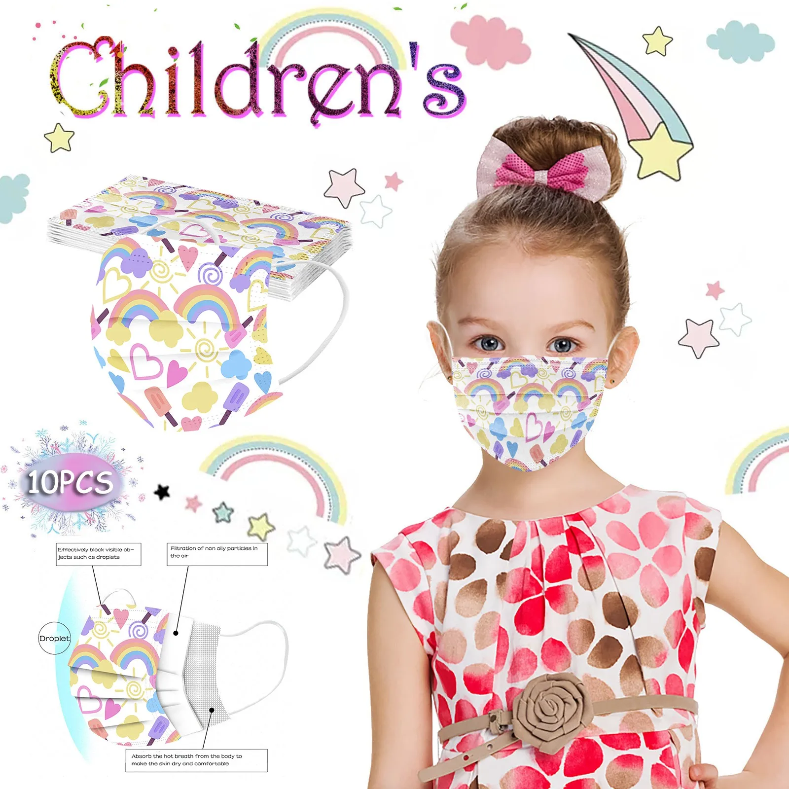 10 шт. детская маска одноразовая Радуга уход за кожей лица маска промышленные 3-Слои маски для лица защитный одноразовый ушной маска