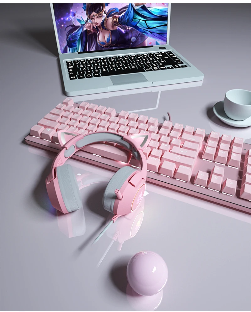 Игровая гарнитура K9 с розовыми кошачьими ушками, с микрофоном, с шумоподавлением, Hi-Fi, 7,1 каналов, RGB, проводные наушники, подарок