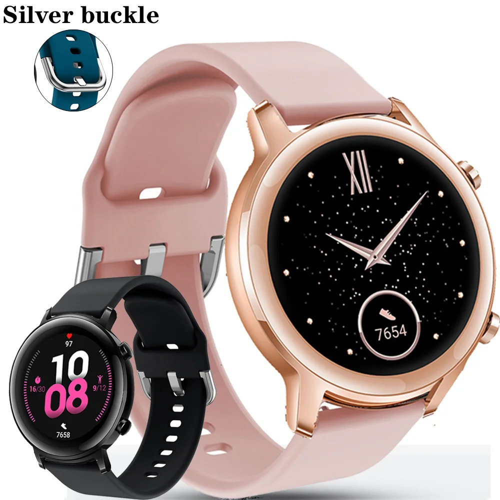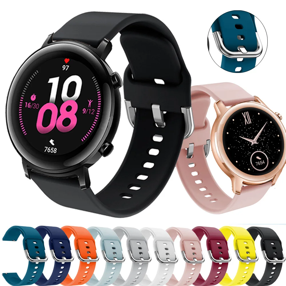 Силиконовый ремешок для часов Huawei Watch GT 2, Honor magic Watch 2, 42 мм, 20 мм, с серебряной пряжкой