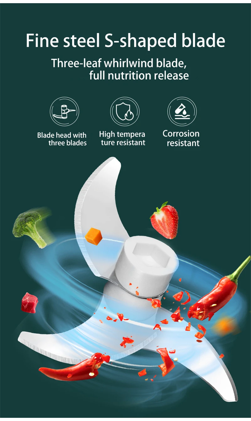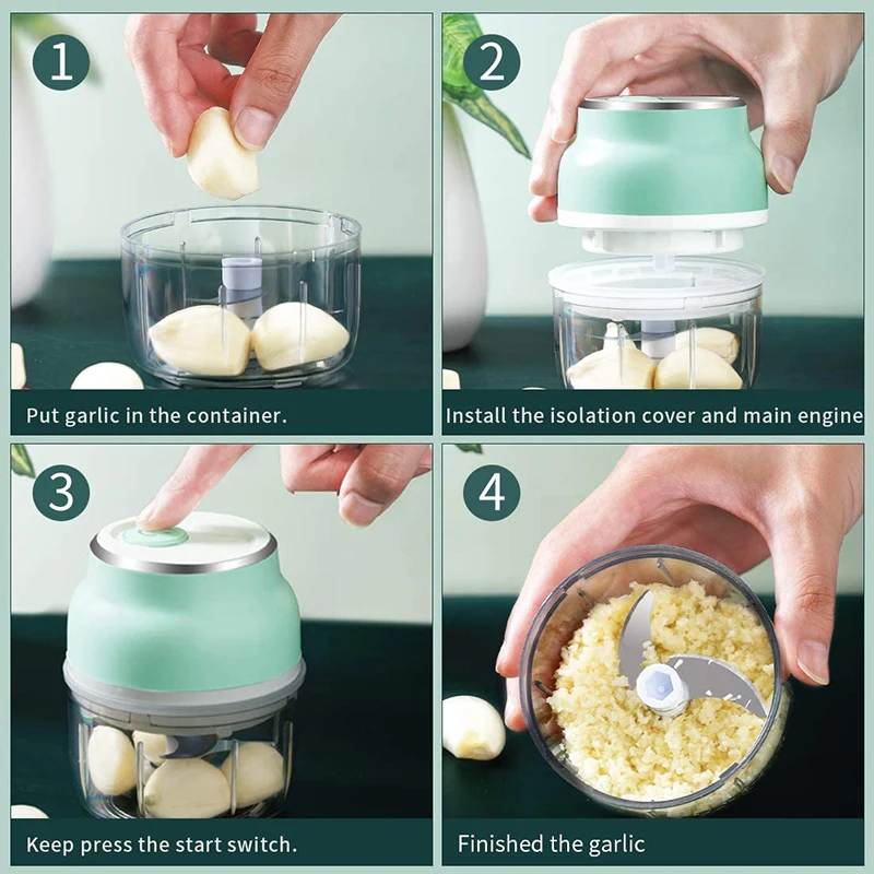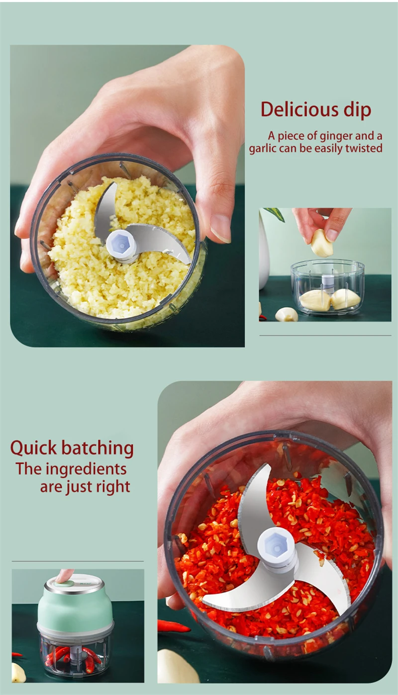 1,150 мл, с 3 острыми лезвиями, это Чоп чеснок, имбирь, перец, овощи, фрукты, мясо и т. Д. И с электрической функцией, сохранить ваше время и отпустить руки. Маленький измельчитель также легко хранить.