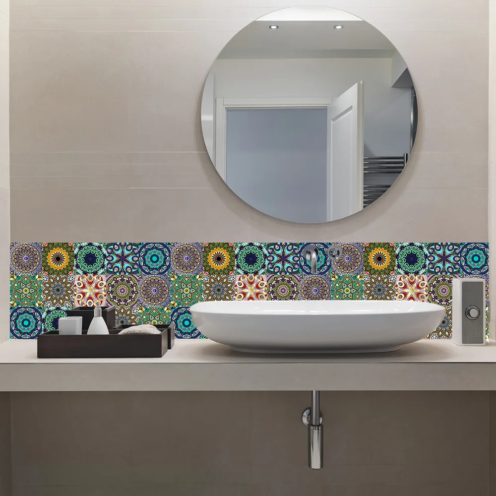 10p ПВХ цветной стиль Мандала Кристалл водонепроницаемый кафельный шкаф обои для кухни Ванная комната мебель ремонт Настенная Наклейка