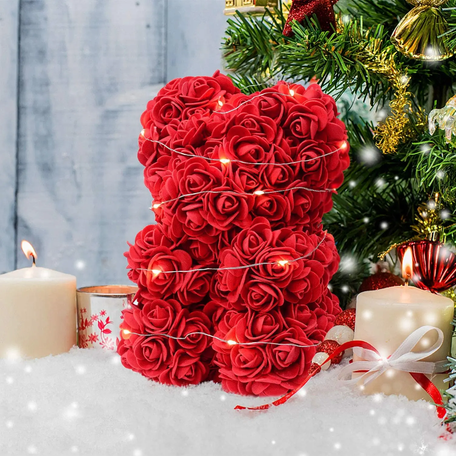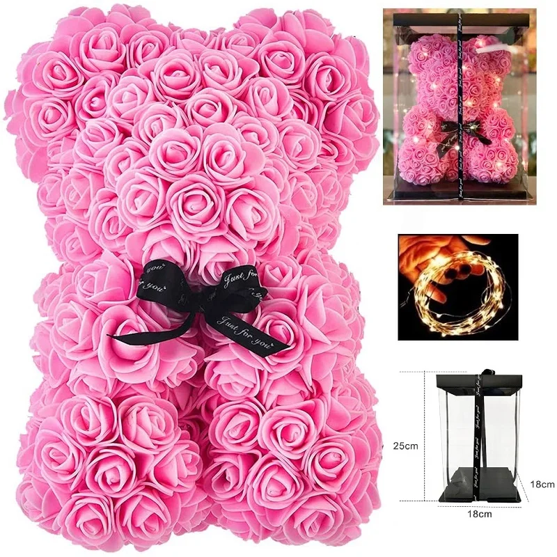 Плюшевый розовый медведь изготовлен из искусственных цветов, без запаха, романтичный аромат, пушистый трехмерный.