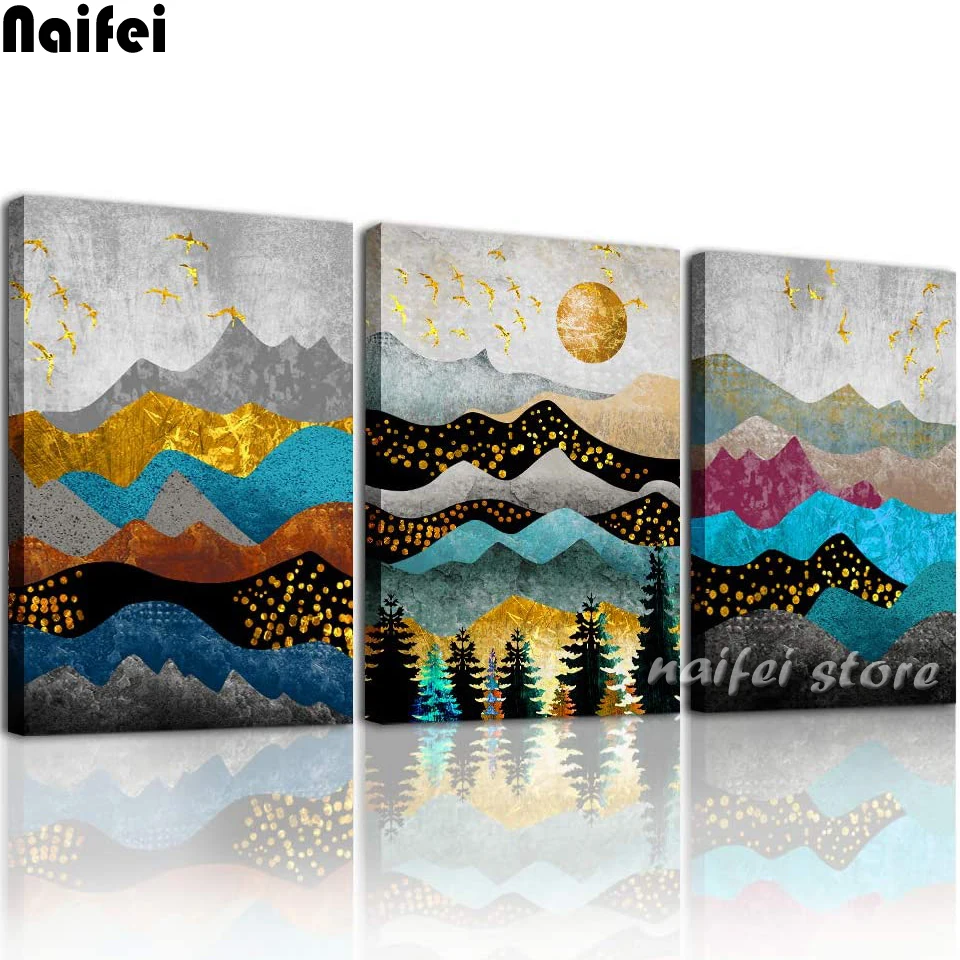 Триптих 5D DIY Алмазная картина полностью квадратная круглая цветная абстрактная горная 3 шт. Алмазная вышивка наборы украшения для дома