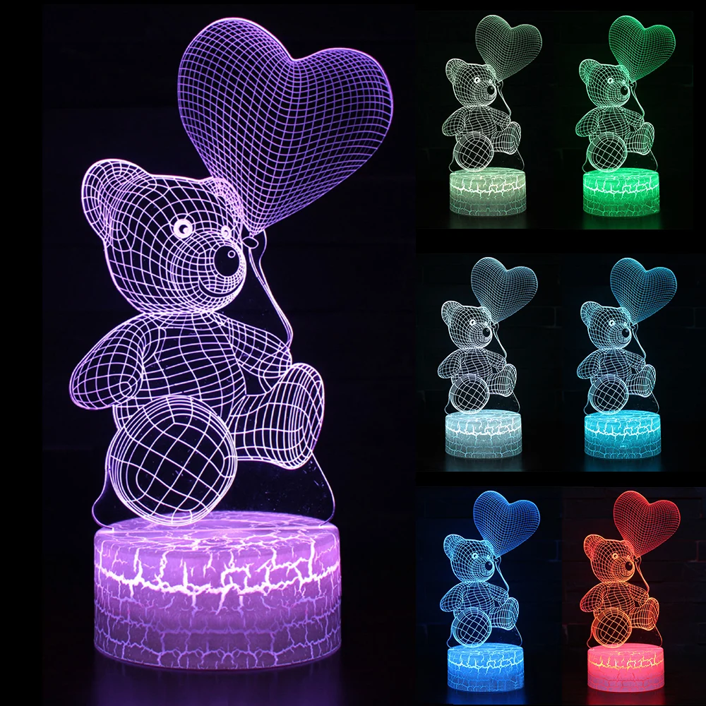 Детский ночник, 3D светодиодный ночник, креативный Настольный прикроватный светильник, романтический светильник льник в форме сердца, медведя, для детей, для девочек, украшение для дома, подарок D30