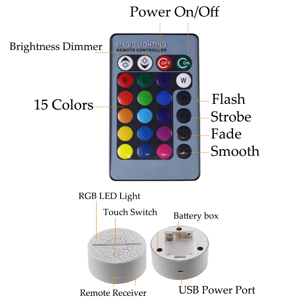 3W Пульт дистанционного или сенсорный Управление 3D светодиодный Но...