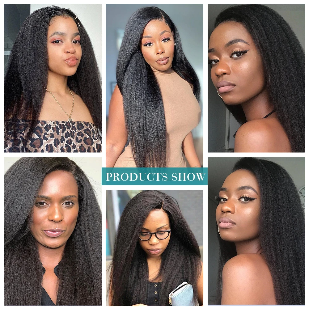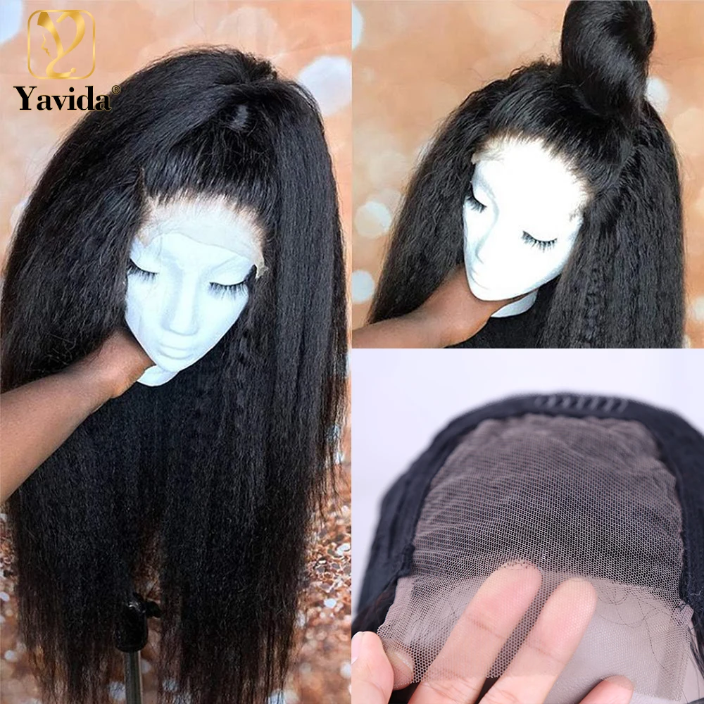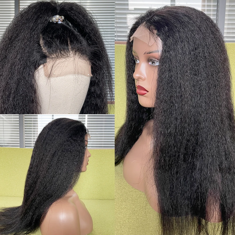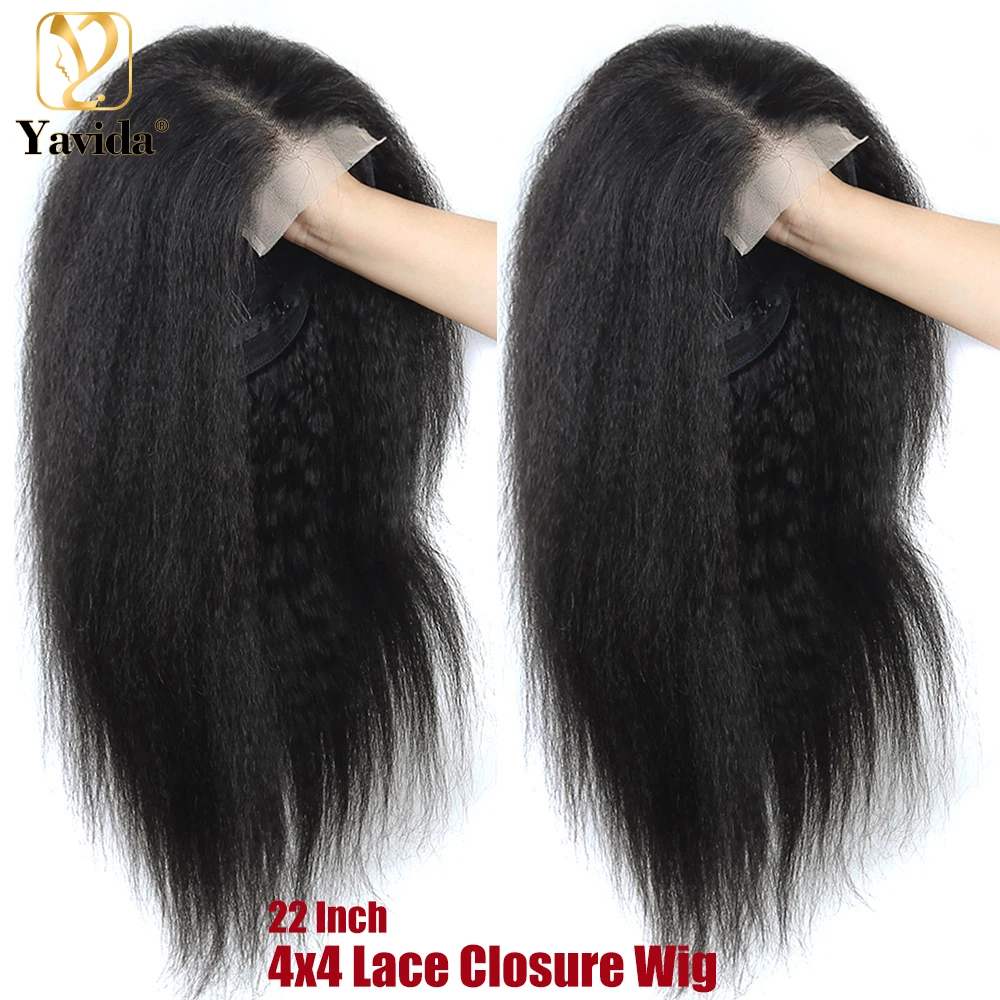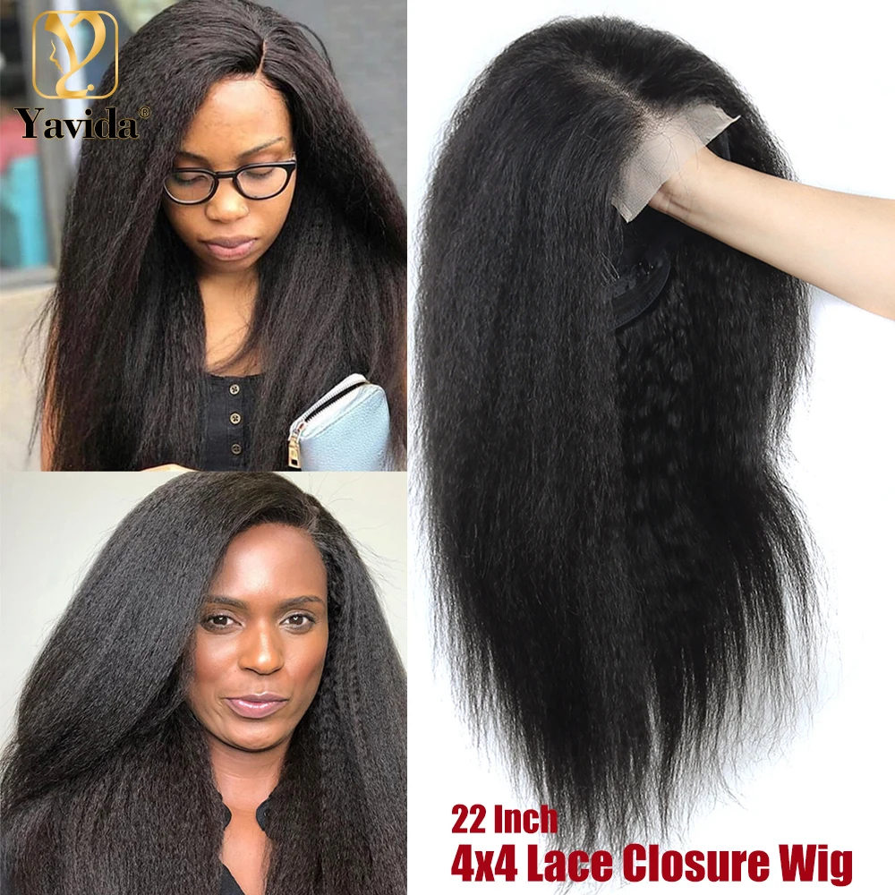 Малазийский кудрявый прямой парик на сетке спереди 4x4, парики на сетке спереди для женщин, парик из 100% человеческих волос с детскими волосами, предварительно выщипанные