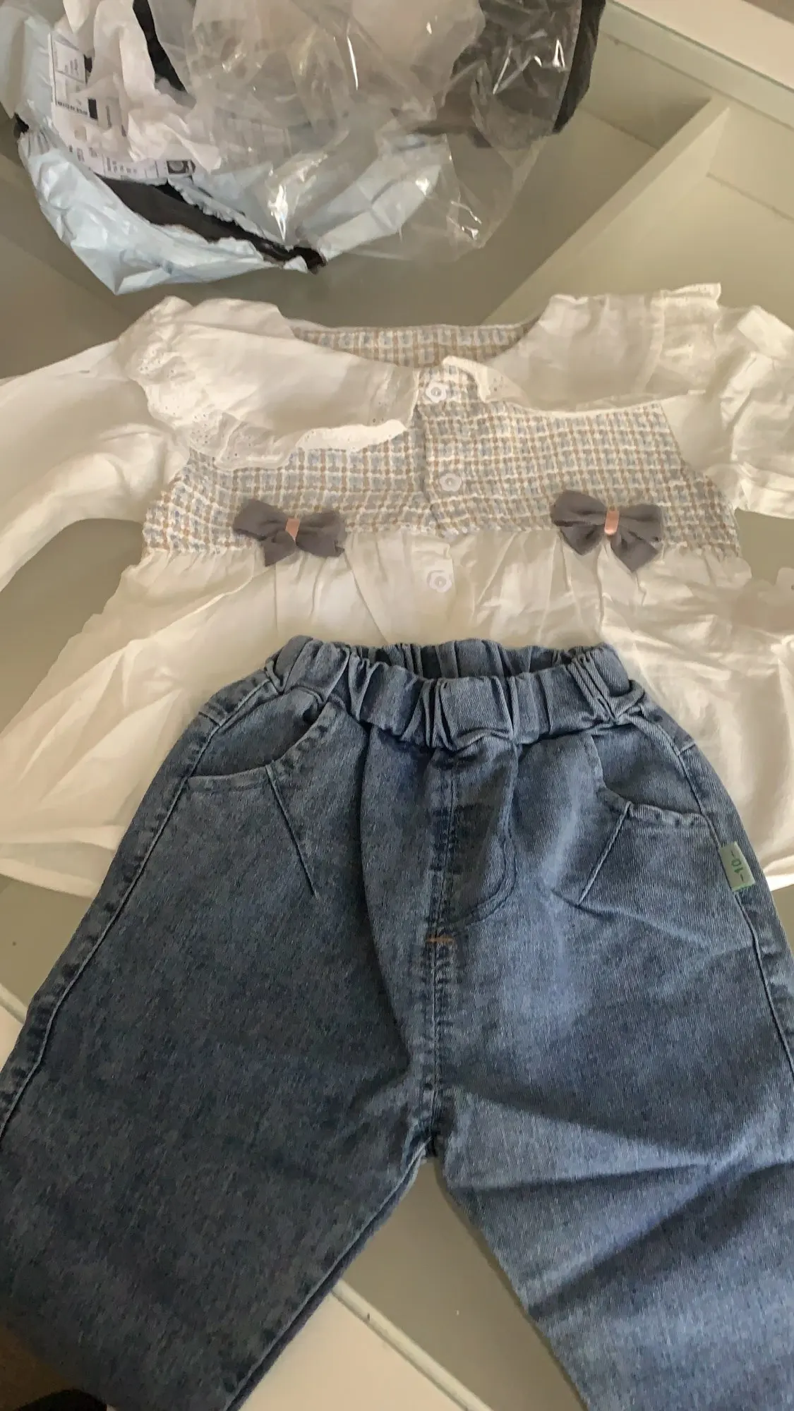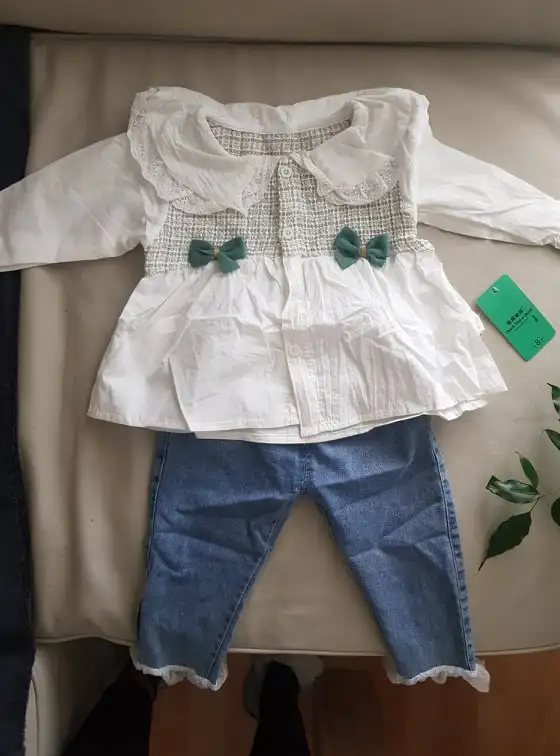 Gorgeous 2 piece set can’t complain for the price my youngest girl has only just turned 2 so had to roll her sleeves up for her, and my eldest is 3, gorgeous fit and would recommend getting the right size, my girls wear age 2/3 in U.K. so I bought age 3T and loads of room and will get plenty of wear out of the set. Thank you so much fast shipment to U.K. to arrived within 2 weeks!