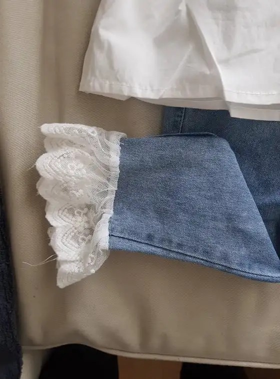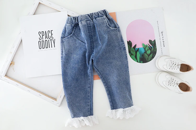 Рубашка с длинными рукавами и воротником в виде листьев лотоса + джинсы, комплект из 2 предметов, Детский костюм для вечеринки, От 1 до 4 лет
