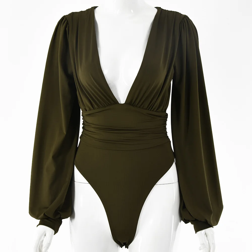 Женское боди с длинным рукавом и глубоким V-образным вырезом