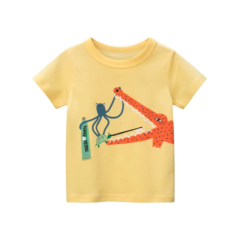 Футболки для детей, футболки для мальчиков и девочек, топы, одежда, Мультяшные хлопковые футболки с принтом динозавра для младенцев, Новое поступление 2021, одежда
