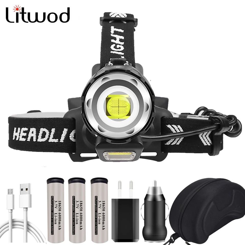 Налобный фонарь XHP90.2, светодиодный, 4 ядра, с аккумулятором 18650