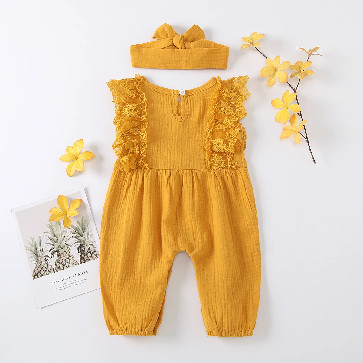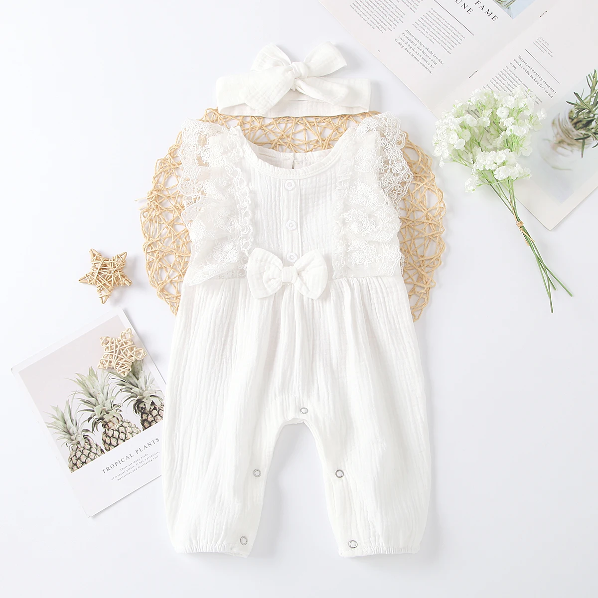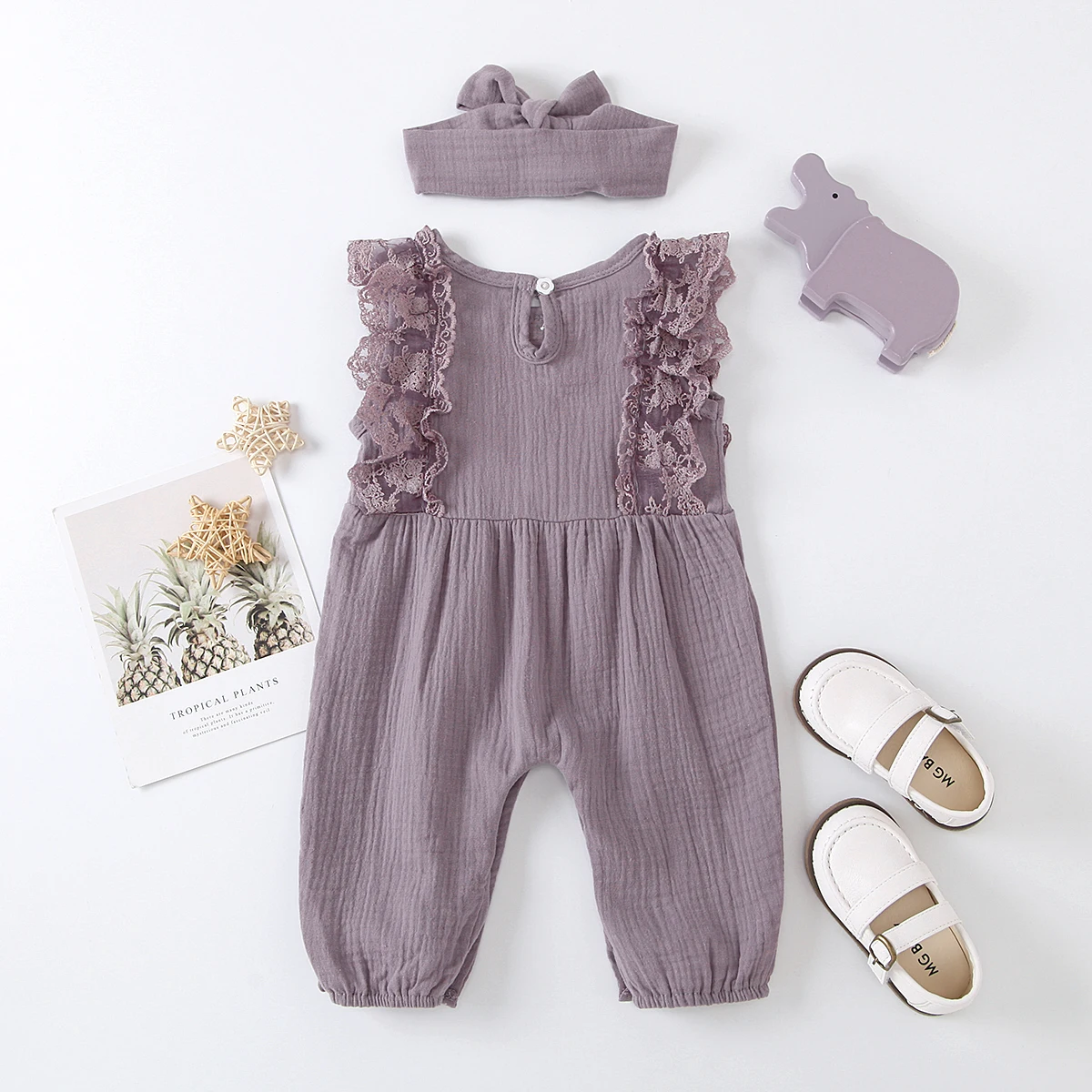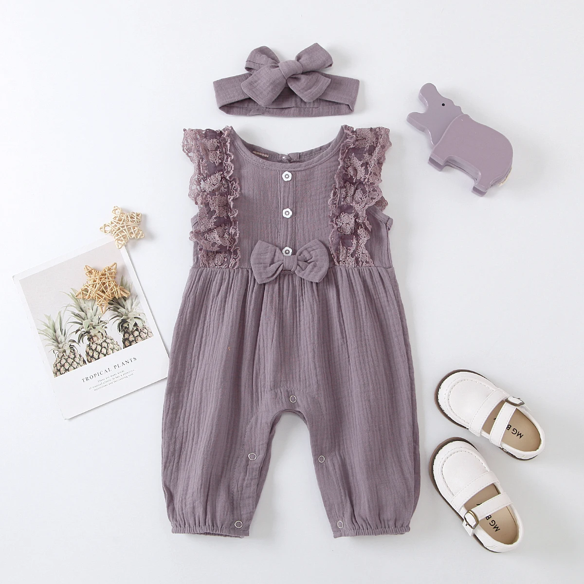 Комбинезон детский кружевной, без рукавов, с повязкой на голову
