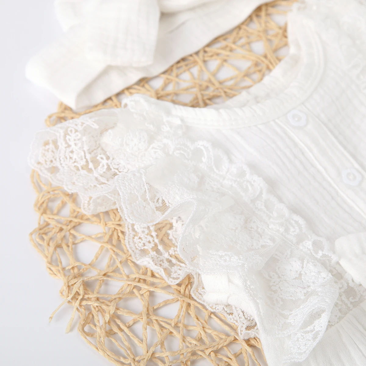 Комбинезон для новорожденных девочек, 2 шт., с круглым воротником + головной убор, кружевной однотонный, комплект одежды без рукавов