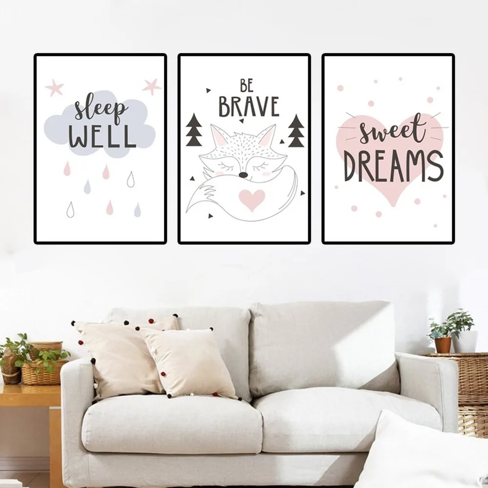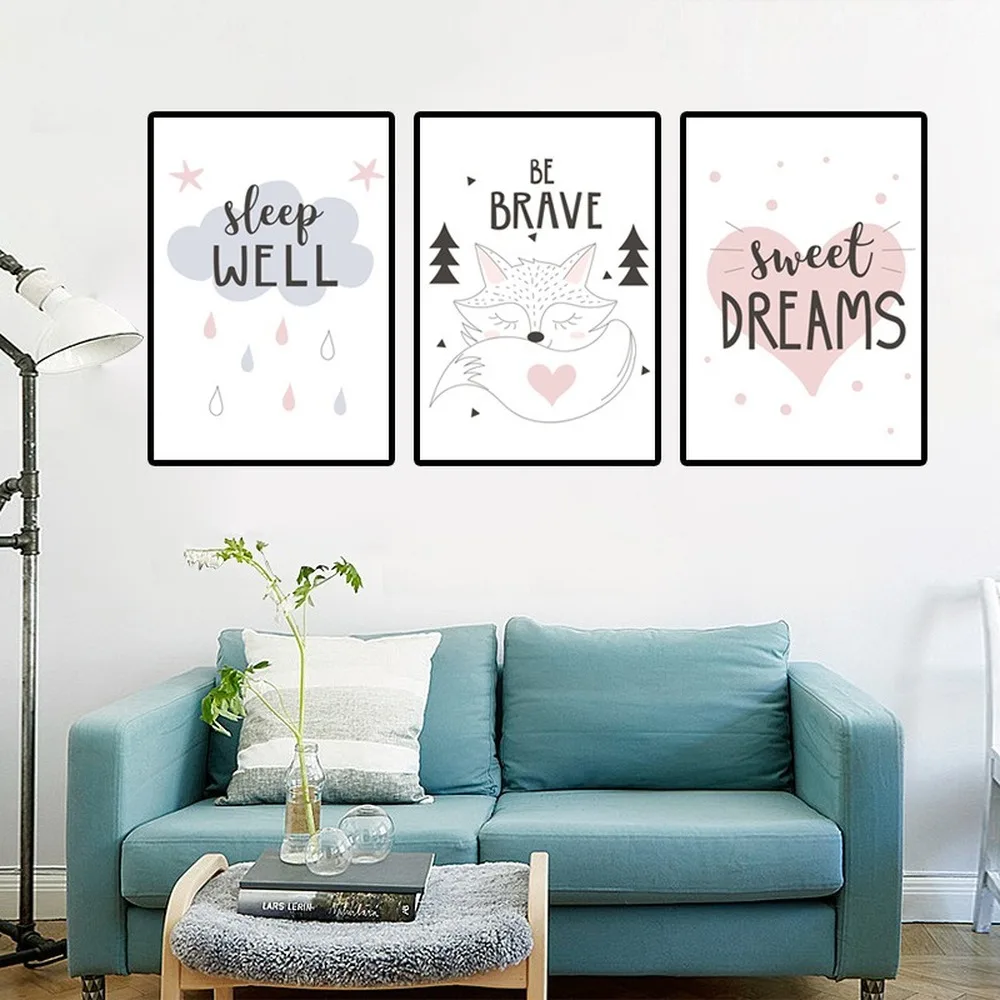 Слип Велл сладкие сны Будьте смелы печати плакатов с принтом Лисенок с вдохновляющей фразой холст картины детская картина на стену для детской комнаты настенный Декор