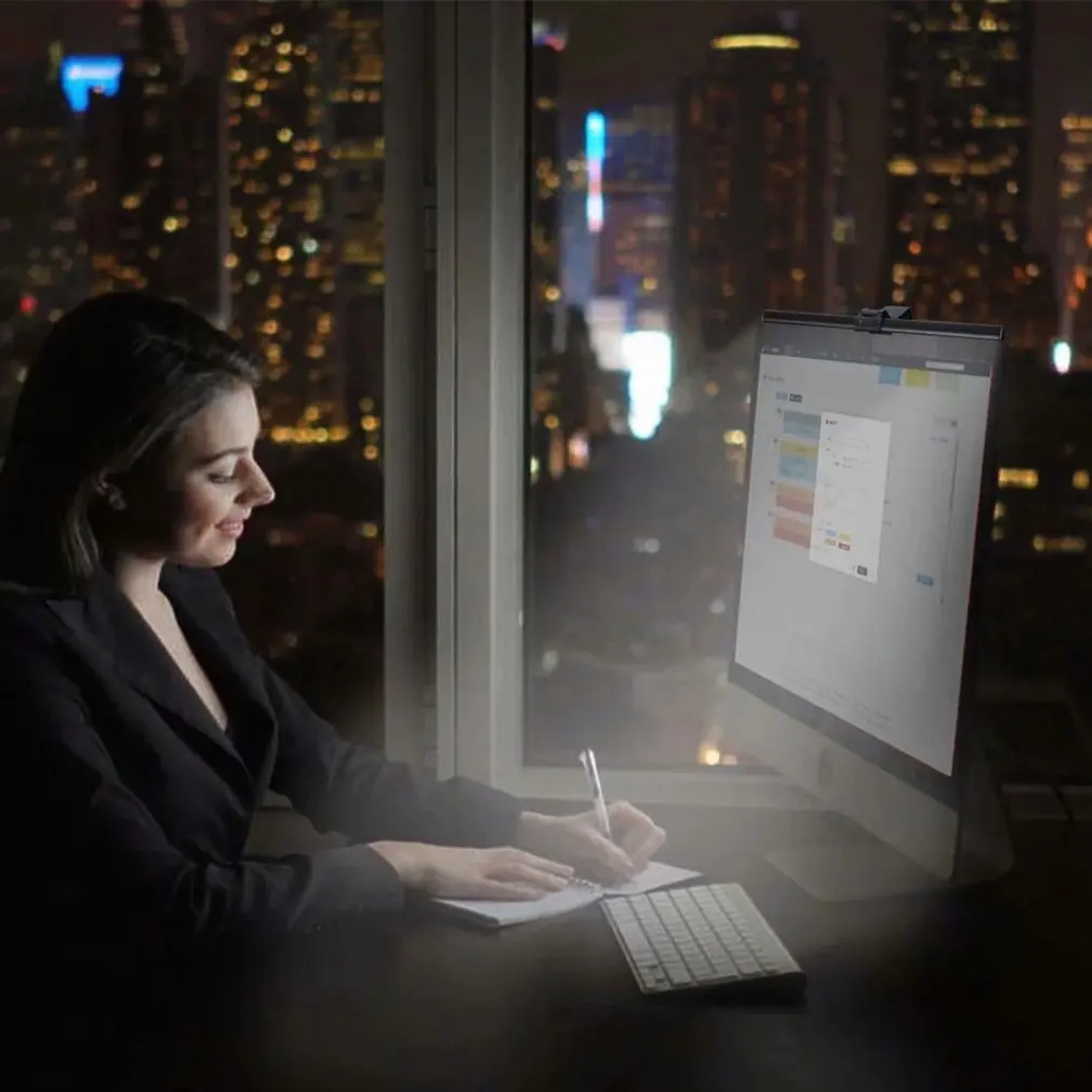 4. Фокусировка на освещении рабочего стола: корпус лампы разработан с углом наклона, чтобы осветить клавиатуру и документы перед экраном.
