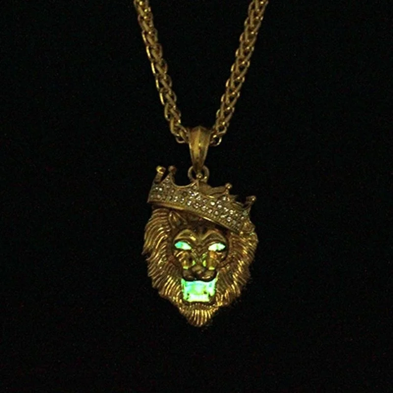 Новинка; Модные Стразы голова льва в короне подвесное ожерелье светящееся ожерелье Mengold-покрытием в стиле панк вечерние кулон ожерелье