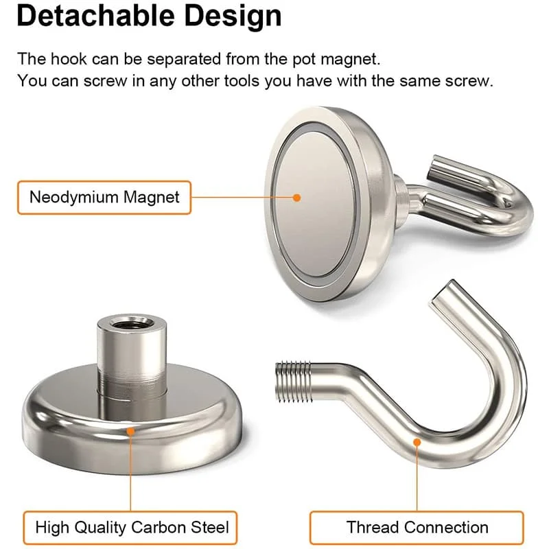 ✔Высококачественные материалы:ВМагнитный крюк собран из высококачественной стали A3 и NdFeB. ЭтоОбычно называется «Магнит горшка» и имеет сильную мощность всасывания. КлассическийДизайн создан из Германии. Это очень универсальный магнит в сбореВ офисах и повседневной жизни.