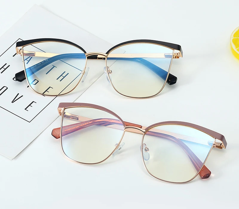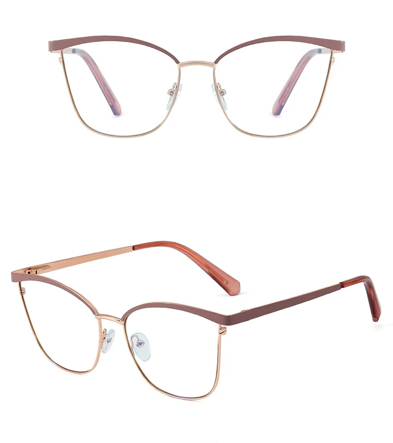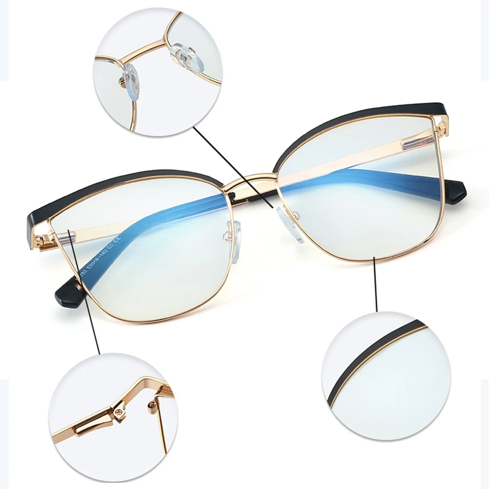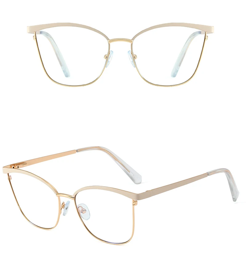 Женские оправы для очков Peekaboo, золотистые металлические оправы для очков с прозрачными линзами, розовый кошачий глаз, женский синий светильник, очки для компьютера, модные аксессуары
