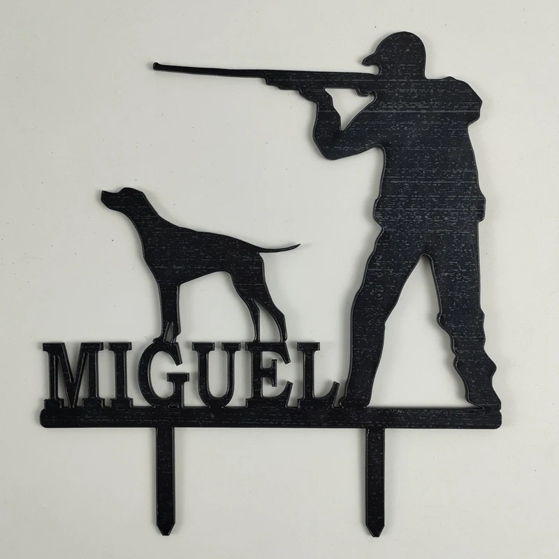 Персонализированный охотничий Топпер для торта с именем на заказ, силуэт охотника и гончая для мужчин, украшение для торта на день рождения