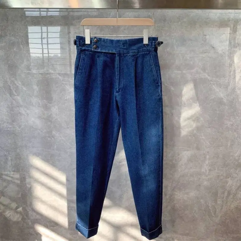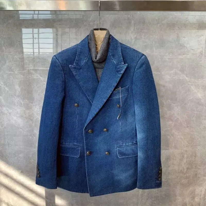 Джинсовые синие мужские костюмы, облегающий костюм для официальной ...
