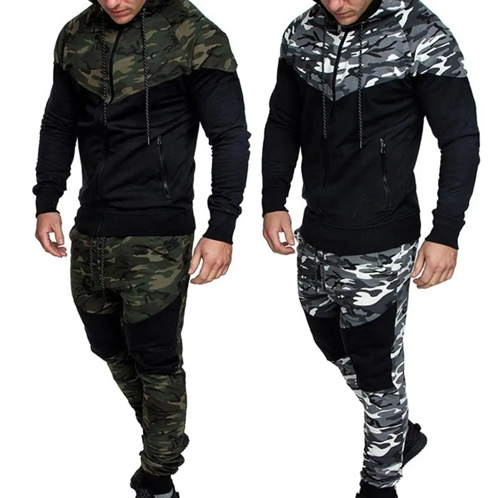 Мужской костюм с камуфляжным принтом, повседневная спортивная куртка на молнии с капюшоном и брюки, 1 шт.