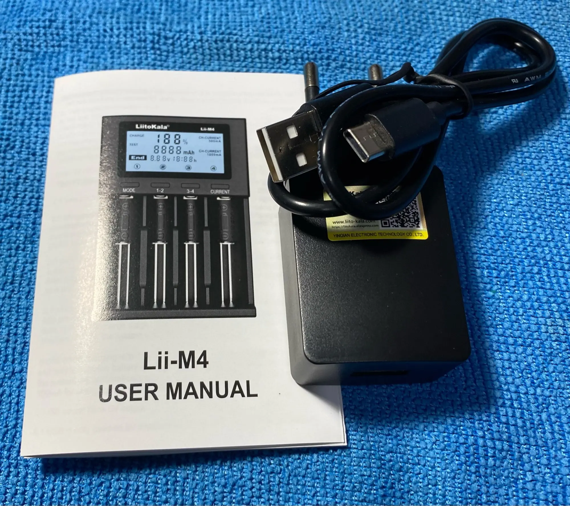 Набор штекеров:Зарядное устройство Liitokala Lii-M4 1 шт.USB кабель 1 шт.Штепсельная Вилка европейского стандарта 5 в 2 а 1 шт.Руководство x1