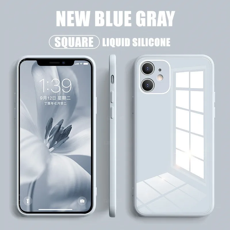 Чехол из жидкого стекла с прямыми краями для телефона iPhone 12 11 ...