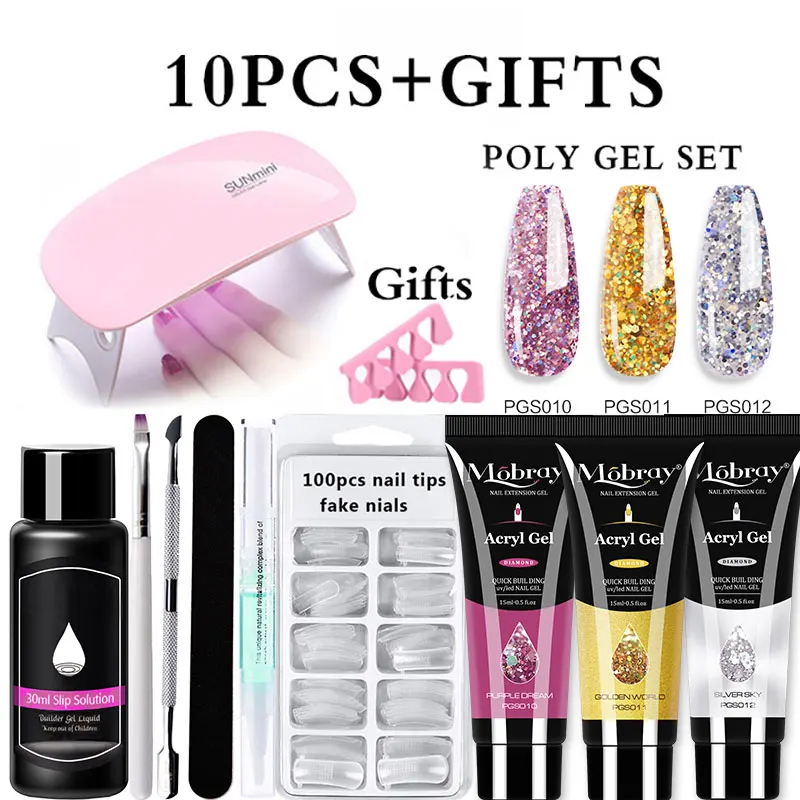 Набор для маникюра с гелем для ногтей UV Светодиодная лампа для сушки ногтей, профессиональные наборы, включая гели, сверла, инструменты для дизайна ногтей с блестками
