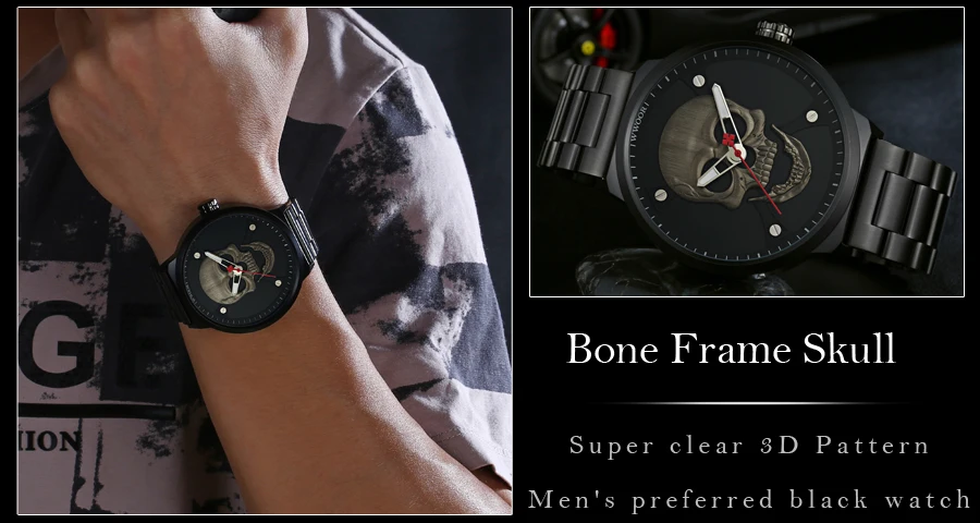 Часы Reloj Hombre мужские с черепом, модные креативные крутые кварц...