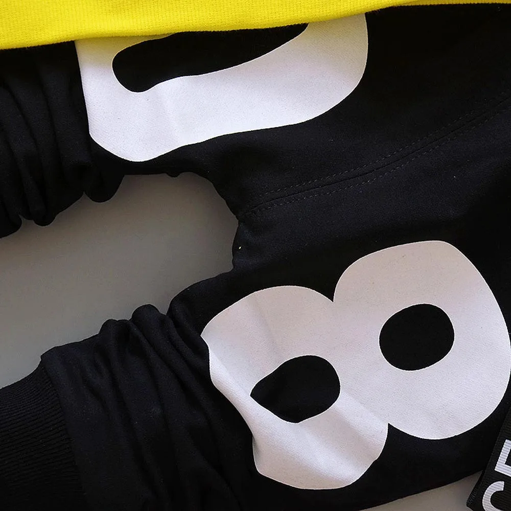 Осенне-зимняя футболка с длинными рукавами и буквенным принтом для мальчиков Топы + штаны, комплект одежды, спортивный костюм для малышей повседневная одежда