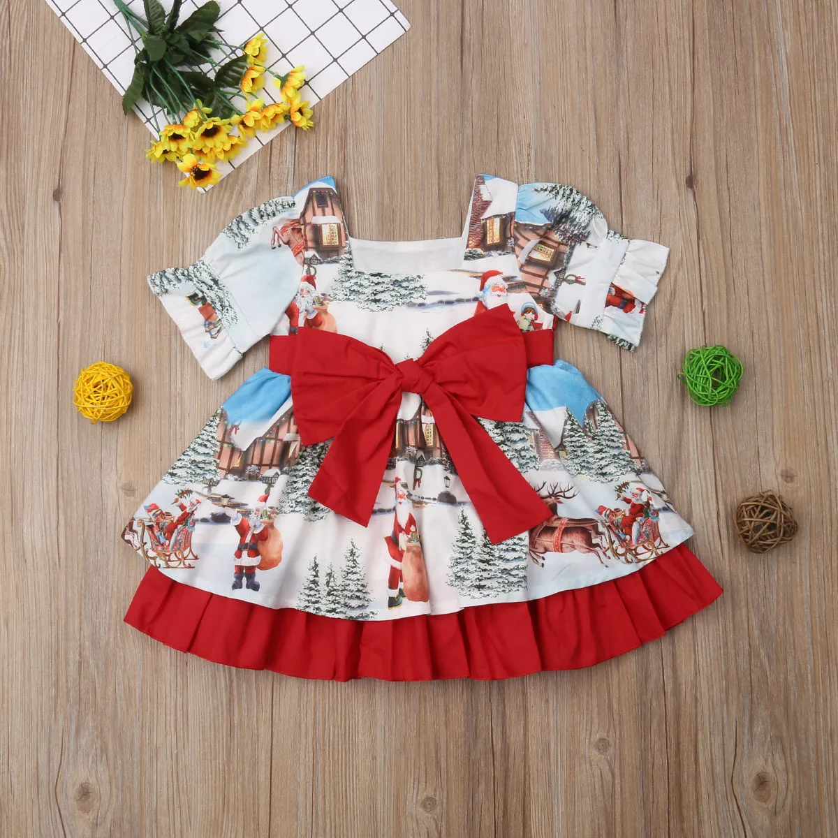 Рождественское платье принцессы, платье для маленьких девочек, рождественское расклешенное праздничное платье-пачка с бантом в виде Санты и снега, аксессуар