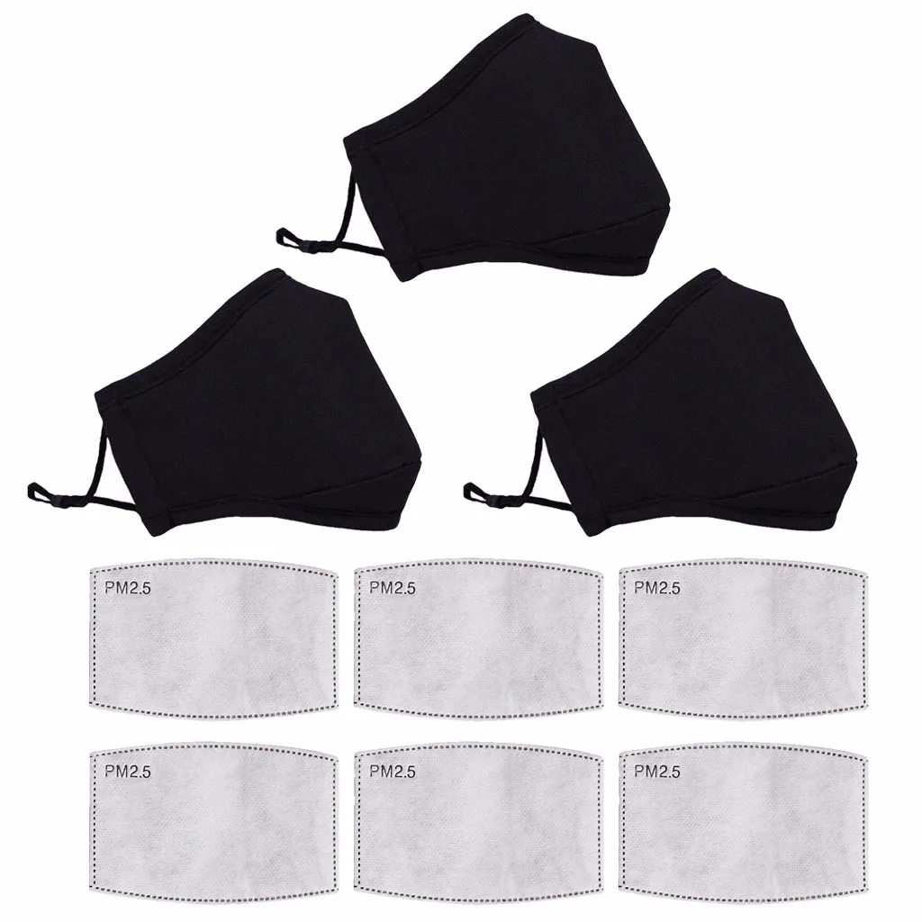 Комплект из 3 предметов, хлопковая черная маска Респиратор маска дл...