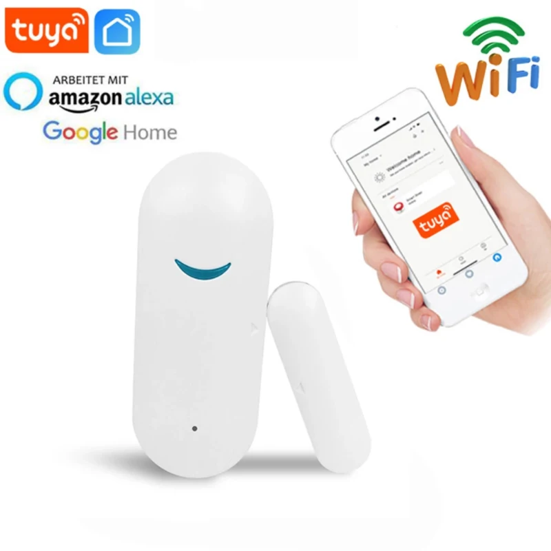 Смарт-детекторы открытиязакрытия двери Tuya, Wi-Fi, умный дом, сигнализация, совместима с приложением Alexa Google Home Tuya