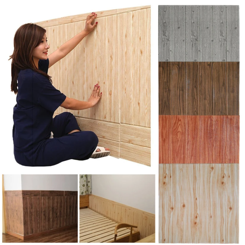 3D древесины стеновые Стикеры пены мягких самоклеящихся современный Стиль Кухня мебель Украшение 77*70 см