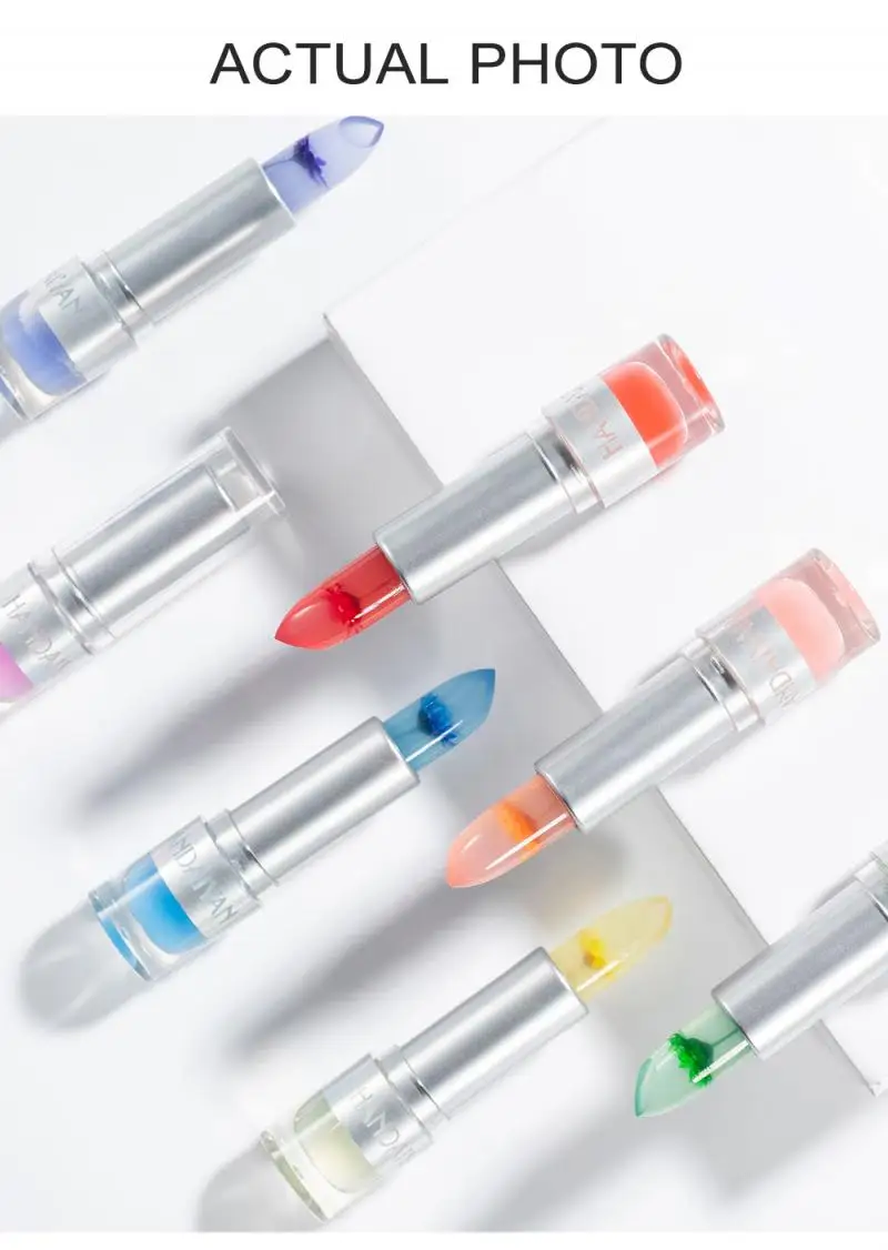 Цветочный Желейный бальзам для губ HANDAIYAN, прозрачный, Увлажняющая помада, меняющий цвет при температуре, водостойкий макияж, косметика TSLM1