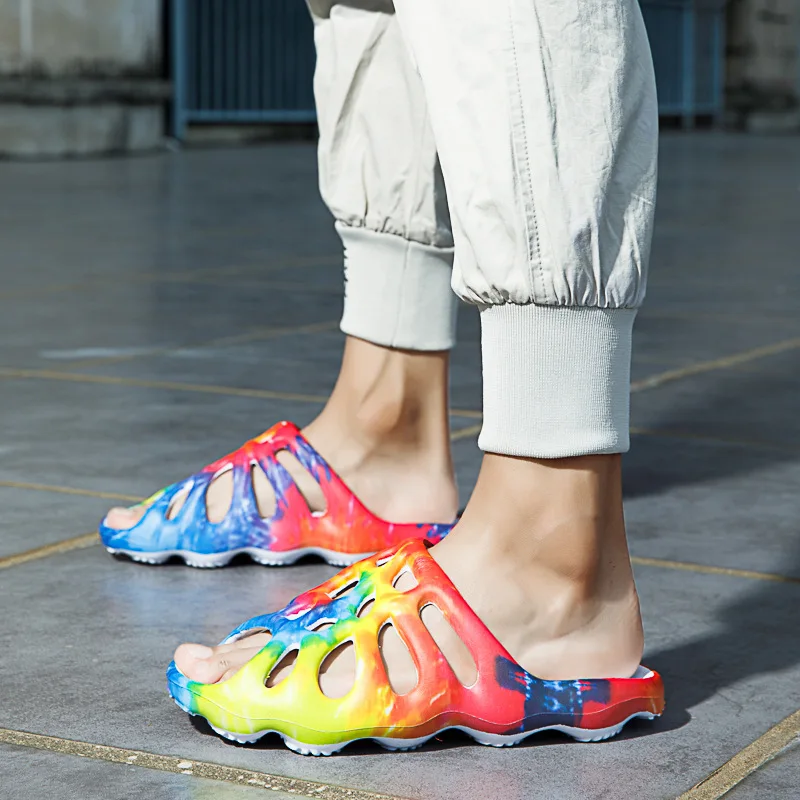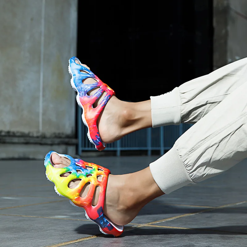 Шлепанцы мужские с радужным принтом, удобные Нескользящие мягкие ма...