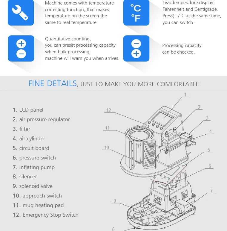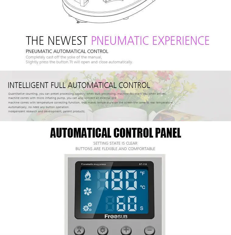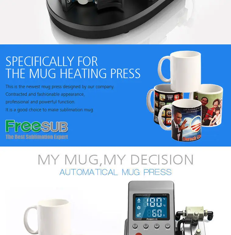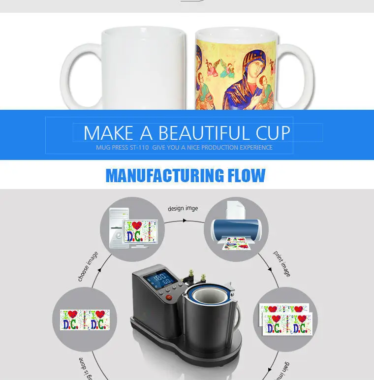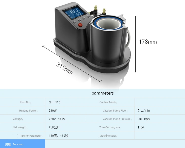 Бренд: FreesubМодель: ST110Спецификация: 11 унцийЕдиница: комплектЦвет: матовый черный, матовый белый, глянцевый черный, глянцевый белыйМаксимальное разрешение: 300 (DPI)Печатные материалы: специальная бумагаРазмер печати: A4Цвета: 256Размер: 178*315 ммГарантия: один годФорма чашки: 11 унцийМощность: 280 ВтНапряжение: 110 В/60 Гц или 220 В/50 ГцВес: 2,8 кгПараметры печати: 180 градусов, 90 секунд