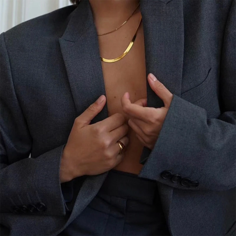 Vnox Классическая обувь на плоской подошве со змеиным рисунком форме плетённого кольца для Для женщин, Длина Регулируемый Нержавеющаясталь колье воротник, шикарный уличная одежда ювелирные изделия