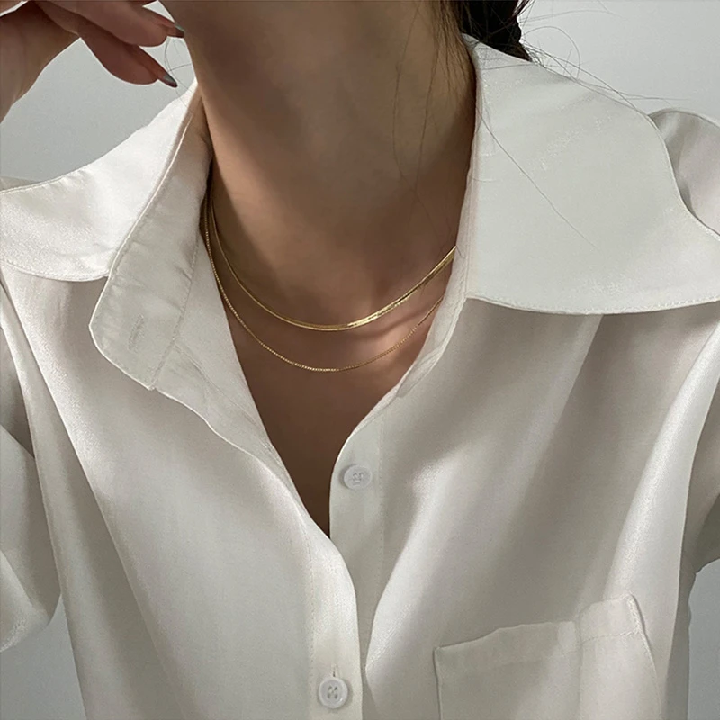 1 мм тонкое ожерелье из змеиной цепи для женщин и девочек из нержав...