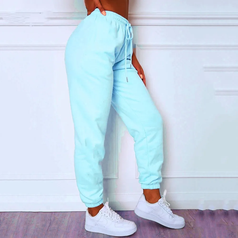 Женские однотонные спортивные брюки, Осенние повседневные универсальные спортивные брюки-джоггеры с завязкой на талии, эластичные брюки для отдыха с карманами