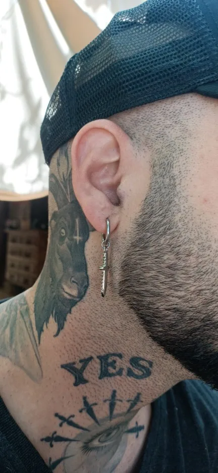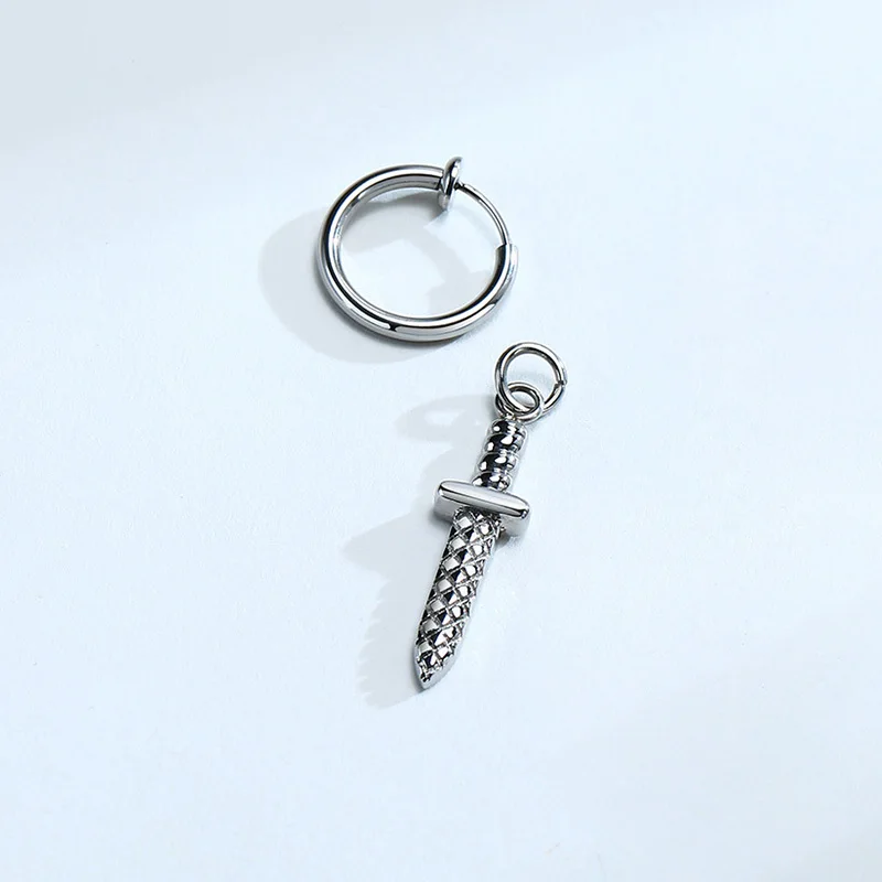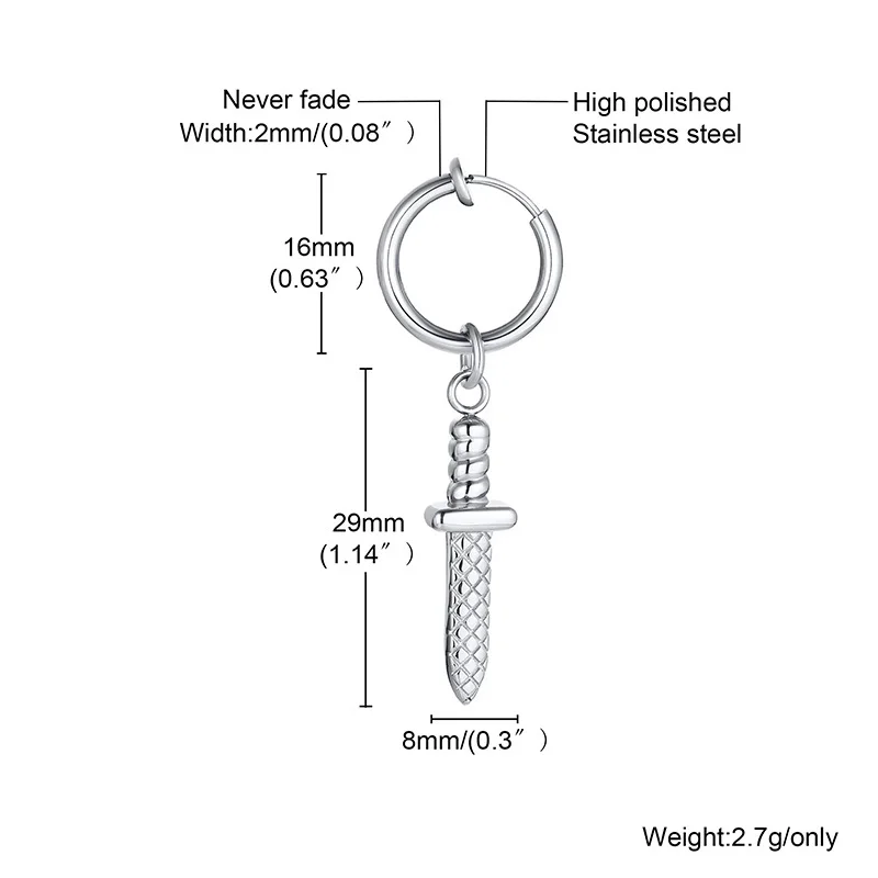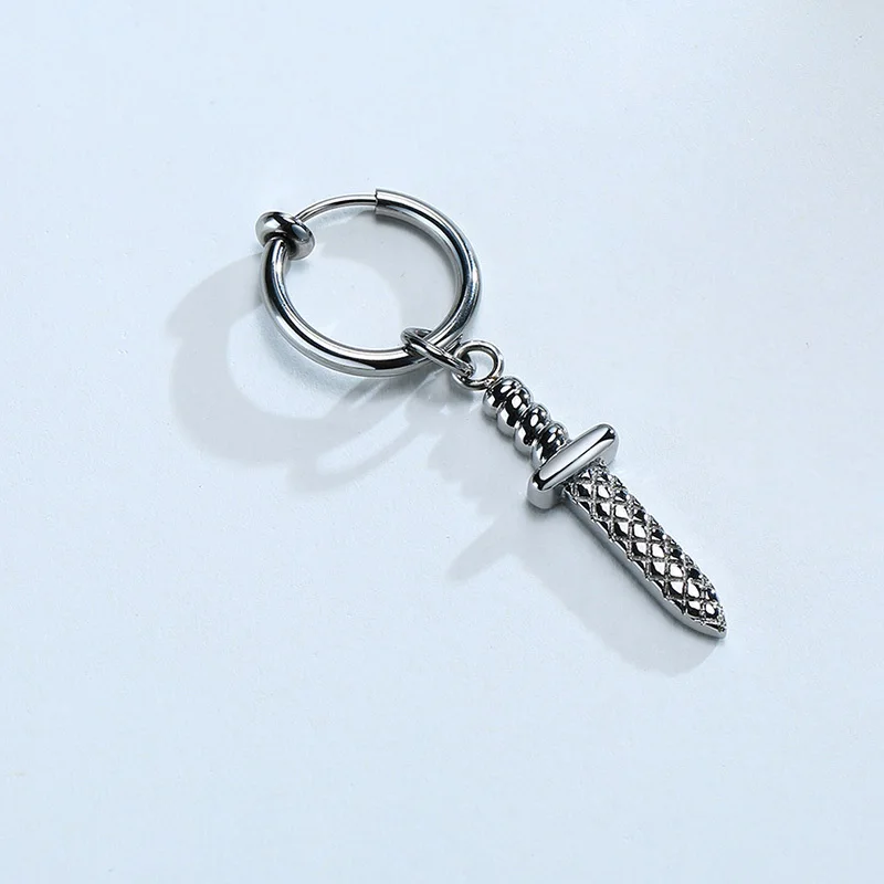 Хотела заказать обыкновенную серьга,а ошиблась и заказала клипсу!Но не беда-можно пересадить на другое кольцо.Кинжал прикольный!