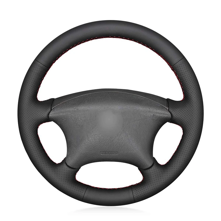 Сшитая вручную черная оплетка рулевого колеса из искусственной кожи...