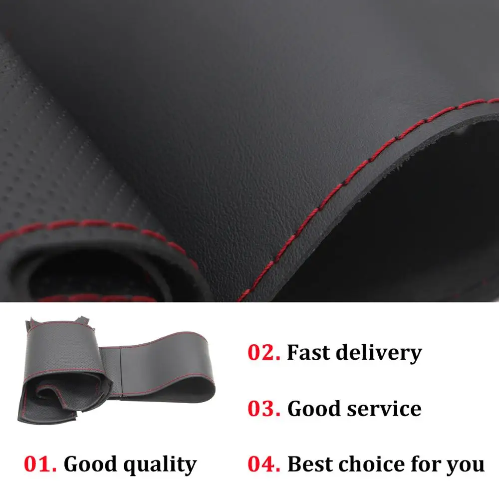 Рука сшитый черный натуральная кожа чехол рулевого колеса автомобил...