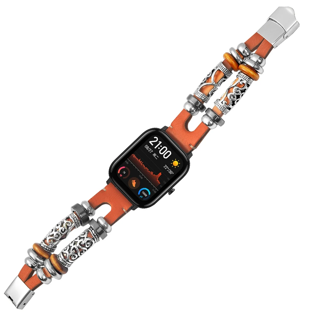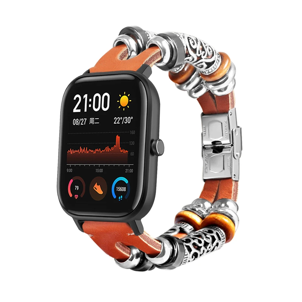 Ремешок для часов Huami Amazfit GTS с бисером в стиле ретро, кожаны...