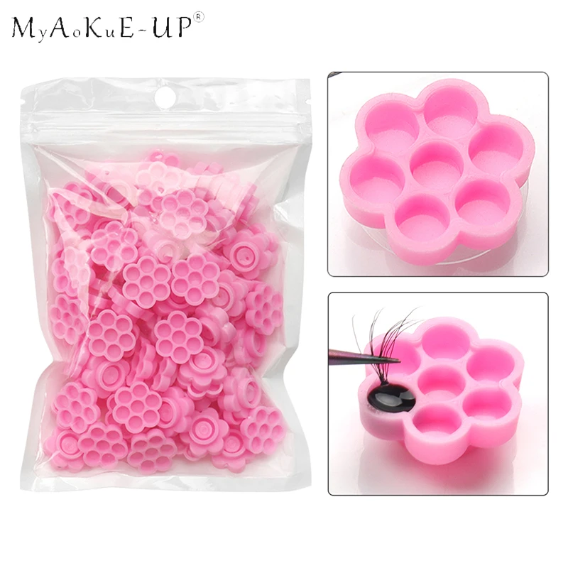 100 шт. наращивание ресниц розовый задержки чашка глаз клей для ресниц держатель цветок задержки чашки наращивание ресниц женские инструменты для макияжа