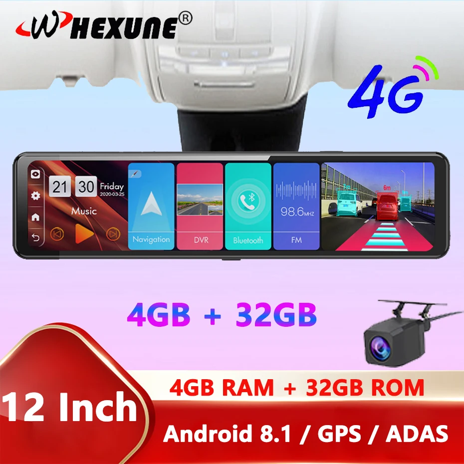 Автомобильный видеорегистратор WHEXUNE, 4G, 12 дюймов, 4-канальный ...